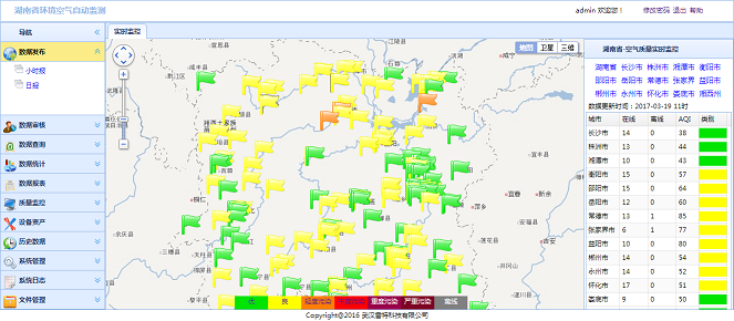 湖南省空氣自動站聯(lián)網(wǎng)管理系統(tǒng)(主界面)